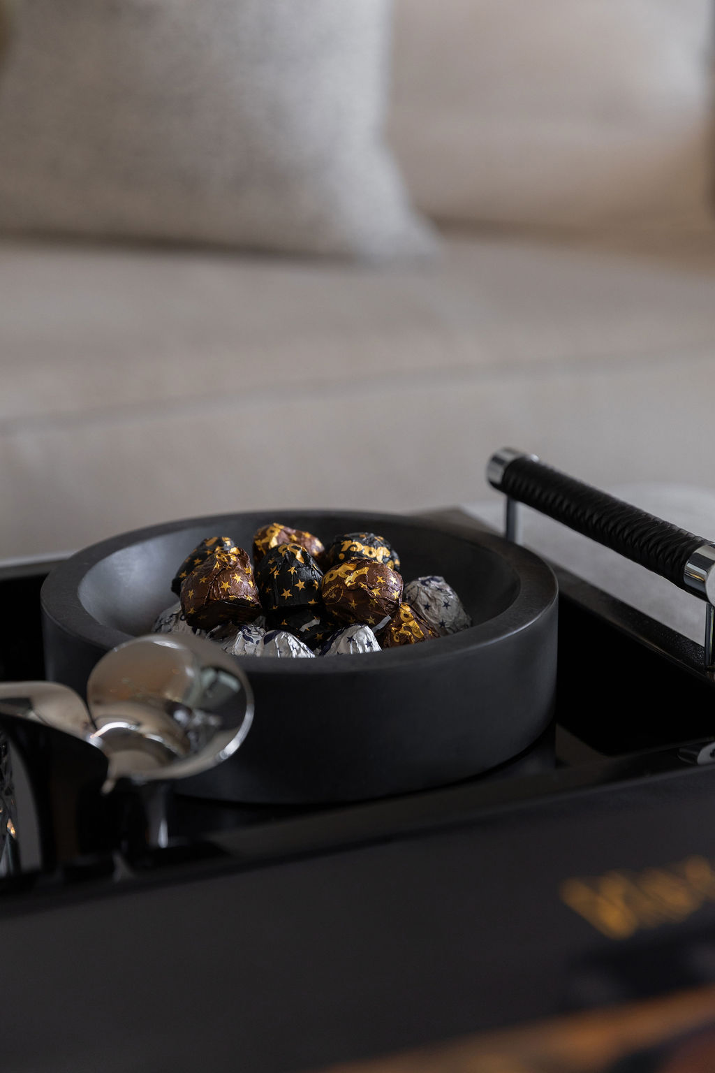 A restrained tonal range underpins the interior palette. Pale finishes establish visual calm, while deeper accents provide contrast and structure. Materiality becomes the primary means of expression: honed stone, layered textiles and custom upholstery are combined with precision, creating richness without excess.